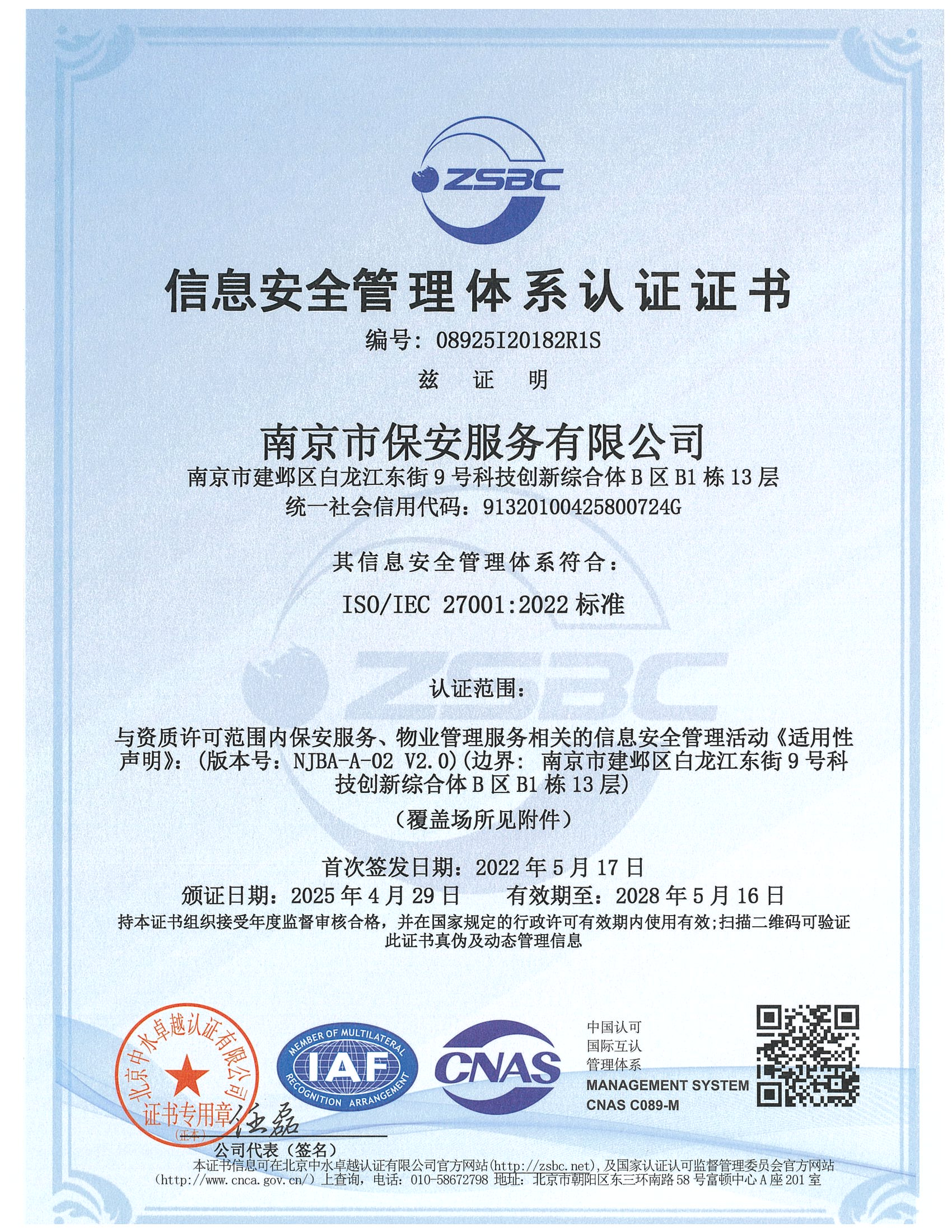南京市保安服務有限公司(原南京市保安服務總公司)成立于1987年4月,是一個有著悠久安保經營歷史和安保經驗沉淀的大型國有保安企業,現為中國保安協會常務理事單位,江蘇省保安協會常務理事單位,南京市保安協會副會長單位,江蘇省一級保安服務公司。